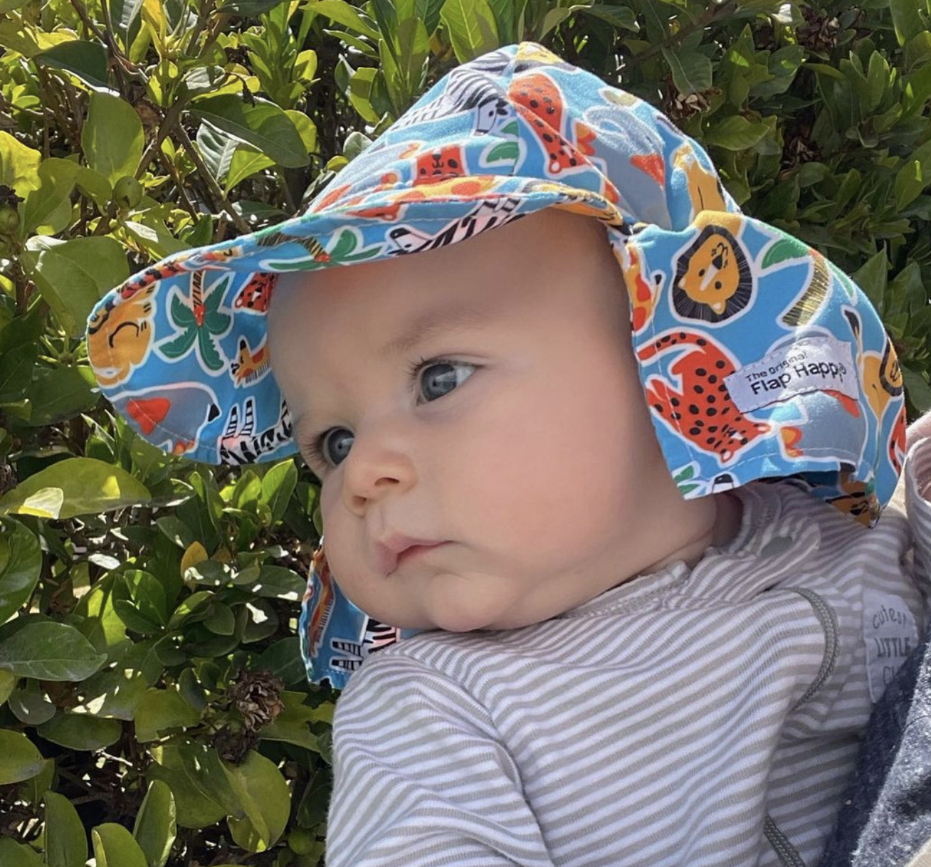 If I had a dollar for every baby sun hat I tried, I would have a nice start on my daughter’s college fund. Baby hats always run big (even for my daughter’s 90th percentile head!). Even when they do fit, they never stay on – that’s where the Flap Happy sun hat is different. It’s a little dorky looking, but its front brim, back flap and elasticated cap have secured it as my go-to sun hat.